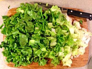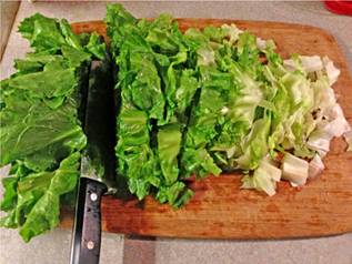 Cutting the green across into stips