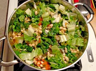 Escarole makes a hearty dinner when combined with white beans. The light bitterness of the sturdy green is balanced with the mild bean flavors and provides a satisfying filling meal. |