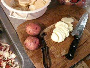 Layering potato and preparing sorrel