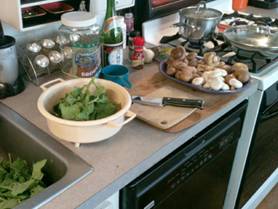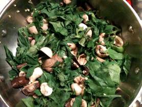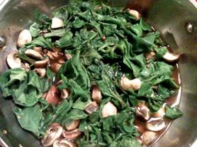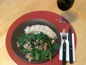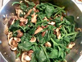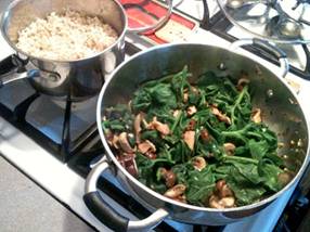 Rice In rice pot cook 1 cup of Basmati rice in 2 cups of water Simmer for 25 min, remove lid at the end to evaporate excessive water Prepare ingredients Wash New Zealand spinach and discard thicker stems Cut mushrooms into ½ inch pieces or half or quarter to similar size Chop garlic cloves Stewin ingredients In deep skillet heat over medium heat Add 1/4 cup of Sake Add garlic and 1/2 teaspoon of Sichuan pepper Stew for about 1 minutes Stew New Zealand spinach Add ½ cup of low-salt low-fat vegetable broth Add mushrooms Simmer with closed cover about 3-5 minutes until tender Add 2 tablespoons of Saki Add ¼ teaspoon of red pepper flakes Stir and Add New Zealand spinach Turnover once so that spinach is covered with base and simmer covered Stew for 2-3 minutes only as long as first spinach leave start to wilt. DO NOT overcook! Ready to Serve Serve with rice. |