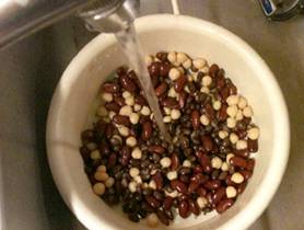 and kidney beans, 0.5 hours for the garbanzo beans) and rinsed again readying