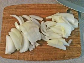 In hot dry sauce pan stir onions and garlic until onions start to brown – 5 min
