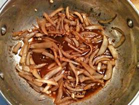 Reduce heat add ½ cup of vegetable broth and solubilize caramelized layer.