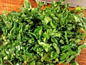 Chopping the greens very finely