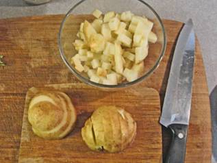 Recipe (Adapted from and expanded to low-salt, low-fat (Esselstyn Plant Diet) from recipe #2544 at thedailygreen,com): For 2 (generous)-to 3 portions. Prep time 1 hour. Cut the