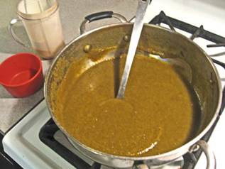 vegetables Chop the onion, cut the cleaned and peeled potatoes Trim end from celery stalks, wash thoroughly, remove damaged leaves and reserve some nice looking ones for garnish. Chop stalks into ½ - 1 inch pieces and cut leaves crosswise into 1 x 1 inch pieces Cook vegetables In large hot soup skillet braise onions without oil until browned for 5 min Deglaze with ½ cup of vegetable broth Add celery, thyme and pepper Stew 25 – 30 min until celery stalks are soft stirring occasionally and replenishing broth if necessary Add wine and cook for 2 more min until wine is mostly evaporated Add 4 cups of broth and potatoes. Bring to boil and simmer 25 min until potatoes are very tender. Remove thyme stems Puree Soup and Serve Use hand blender to puree soup to finely grained consistency. Serve garnished with some celery leaves |