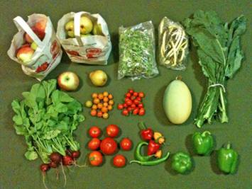 Apples Tomatoes Hot peppers Green peppers Microgreens Mixed greens (chard, mustard, beet, spinach) Eggplant Radishes or parsley |
