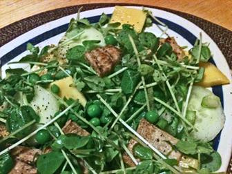 flavor, the peas and the mango sweetens the fibrous texture of the shoot