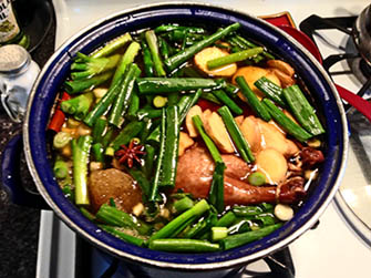 This meal will be a big surprise for everyone expecting a “roasted” duck. Its beautiful color comes from the soy sauces and its long time cooking time makes the meat as soft as butter and falling off the bones! The rich full-bodied flavor beats that of any duck prepared in any other way. This is a must recipe for an exotic and unique dinner experience.