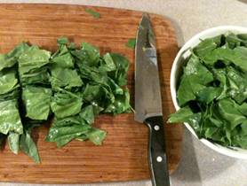 Chopping chard leafs into small pieces.