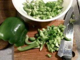 Chopping the pepper.