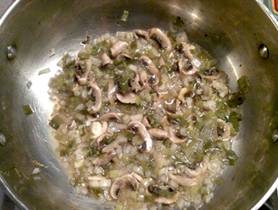 Simmering just a few minutes until chard starts to wilt. |