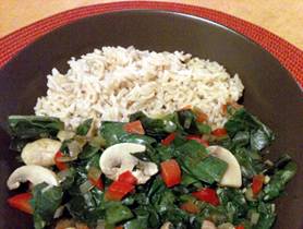 Chard with Peppers and Mushrooms over Rice |