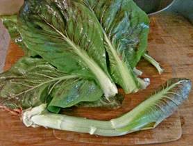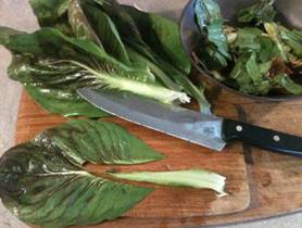 Destemming the radicchio leaves