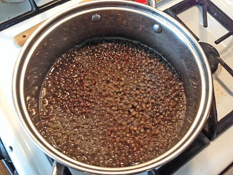 lentils In 6 cups of water Cook 25 min Braise onions, deglazed w 1 cup water 1 teaspoon cumin 1 teasp. smoked