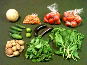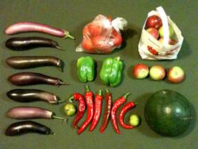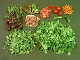 New Zealand Spinach Potatoes Basil Beets Cucumber Squash Lettuce Peaches Tomatoes Sun-gold Cherry Tomatoes |
