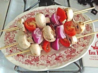 available: white mushrooms small red onions, small tomatoes. Then I collected