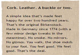 Birkenstock Contoured Footbed Encourages Foot Health 1. Flexibility: When walking, the foot flexes to support your body. The Birkenstock sole and cork footbed flex with the feet for comfort with every step. The raised toe bar encourages the natural gripping motion of your feet exercising your legs and increasing circulation